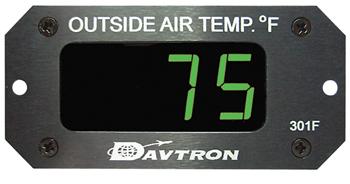 The 301F-A-GRN digital OAT replaces other difficult to read OAT displays. The LED display is bright and easy to read, making it especially helpful for night or IFR flying. Temperature is displayed in Fahrenheit. This version has a 3-pin connector for the probe; temperature is displayed in Fahrenheit.