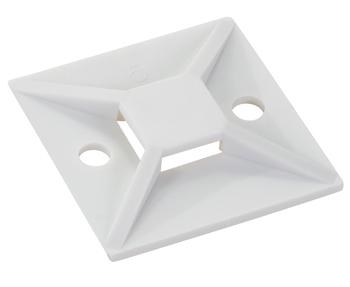 CABLE TIE MOUNT/Adhesive bases. White, .18 max tie width, 1.12 length/width, .18 hole diameter. For use with 18 lb-30 lb cable ties.