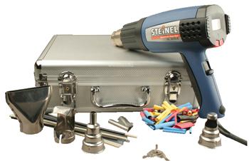 An invaluable tool kit at the bench, Steinel's Silver Anniversary Heat Gun Kit is a deluxe, all-in-one kit for those needing a new heat gun setup. This kit is equipped with a microprocessor-controlled HL 2010 E IntelliTemp heat gun, four nozzles, a welding tip, an assortment of shrink tubes and welding rods, and a silver carrying case.