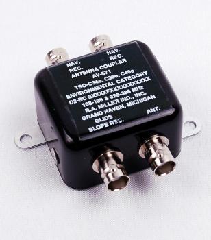 The AV-571 coupler splits the signal from a VOR-Type antenna to feed two NAV and one Glide Slope receivers. The coupler's construction is similar to the AV-547 coupler and operates altitudes up to 50,000 ft.